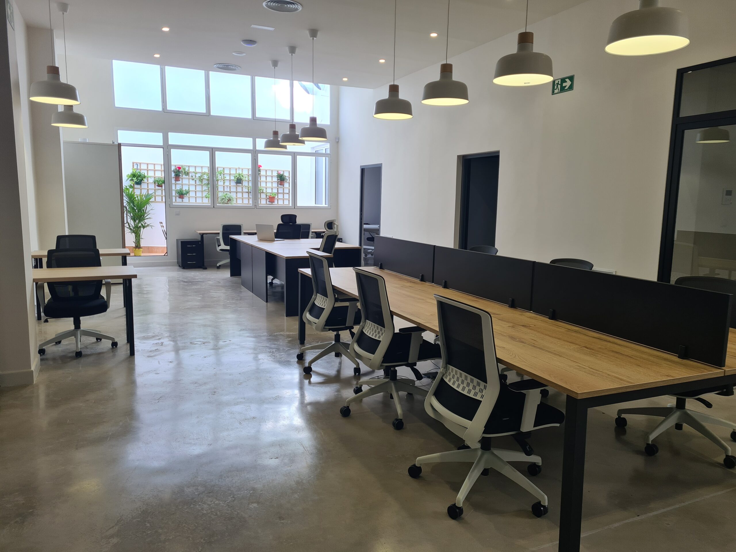 Si no necesitas una oficina, puedes alquilar un puesto fijo o flexible en nuestras mesas: tendrás tu espacio, una cabina para llamadas y los demás servicios del coworking.